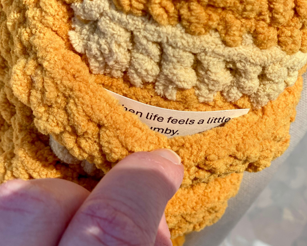 Meet the Comfort Carb Baguette — a deliciously cute crocheted baguette that can be made with or without safety eyes! What makes this pattern special is pockets that are crocheted between the “scores” of the bread. They’re designed especially for including thoughtful messages to the person you’re gifting the baguette to! And to save you some time, I’ve gone ahead and created a printable PDF of messages that you can include in your baguette (included at the end of the pattern)!