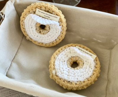 The Comfort Carbs Collection is a playful crochet series inspired by cozy baked goods and the comfort they bring. Each pattern includes little spaces where you can tuck hidden notes, making them perfect for gifts, encouragement, or craft fair surprises.