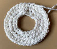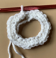 Rnd 2 – 2 sc in each st around (third photo below). Join with sl st to first sc of rnd, ch 1 (20 sc).
