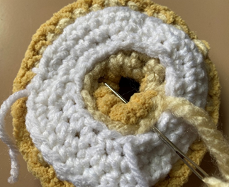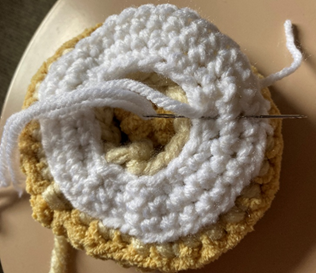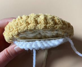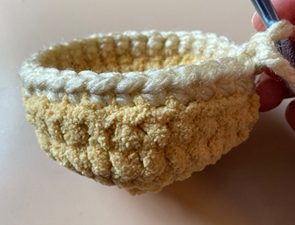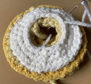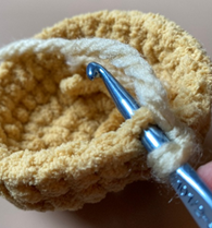 Rnd 5 – sc in each st around; in last st, join light beige yarn. Join with sl st to first sc of rnd, ch 1 (30 sc)