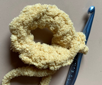 Bulky weight (6) Chenille yarn in dark beige – 40 yds (Bernat Blanket in Sand used in photos)
