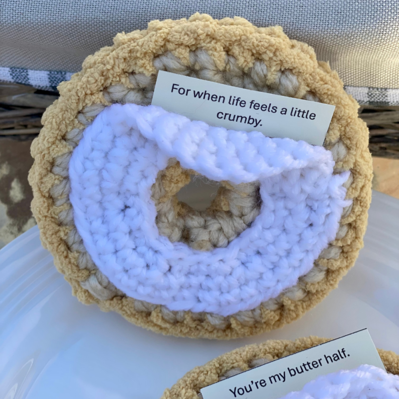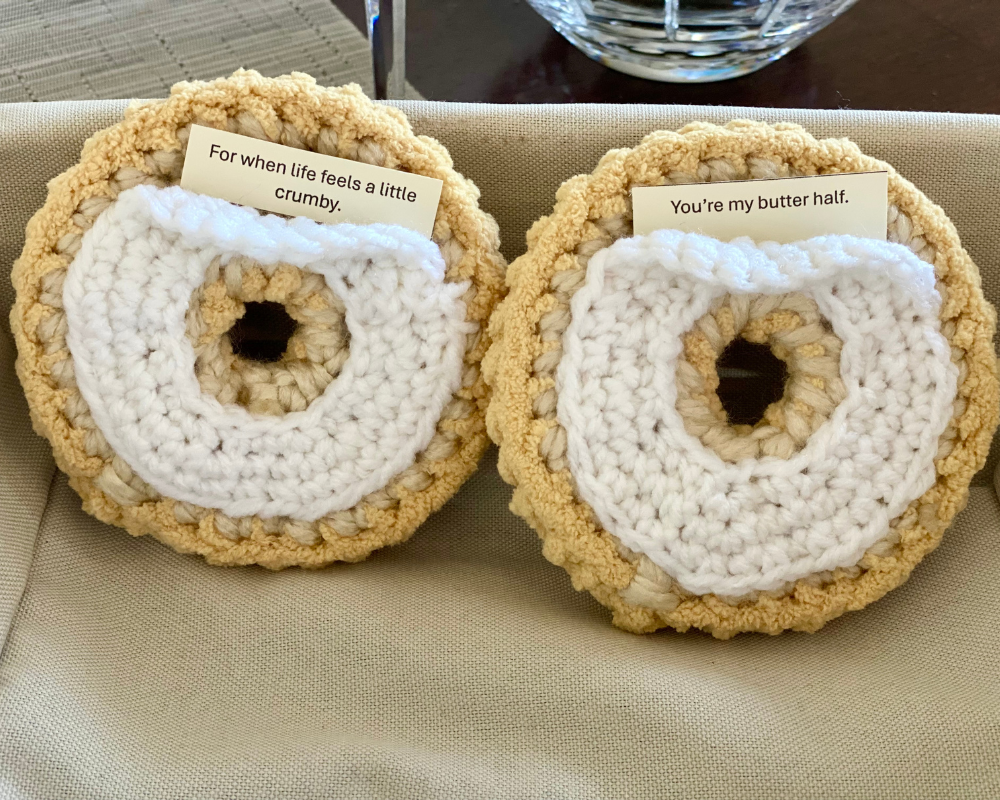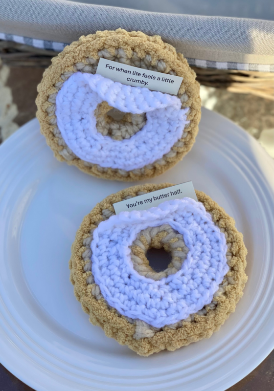 I’ve also included a printable message sheet you can cut out and use inside your bagel gifts! Look for it at the end of the pattern!