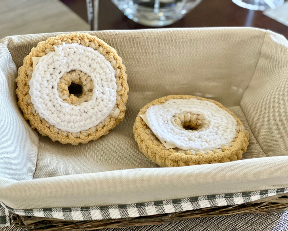 These bagels are made with amazing gifting potential in mind – think emotional support gifts, teacher gifts, and most of all: craft fairs and markets! They work up quickly and have endless possibilities when it comes to customization.
